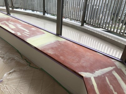 今回は窓枠の木部のシートの張り替えの作業をご紹介していきたいと思います。日焼けや経年による劣化でシートが割れてしまうことがよくありますので、その際に行う修繕方法についてご紹介いたします。